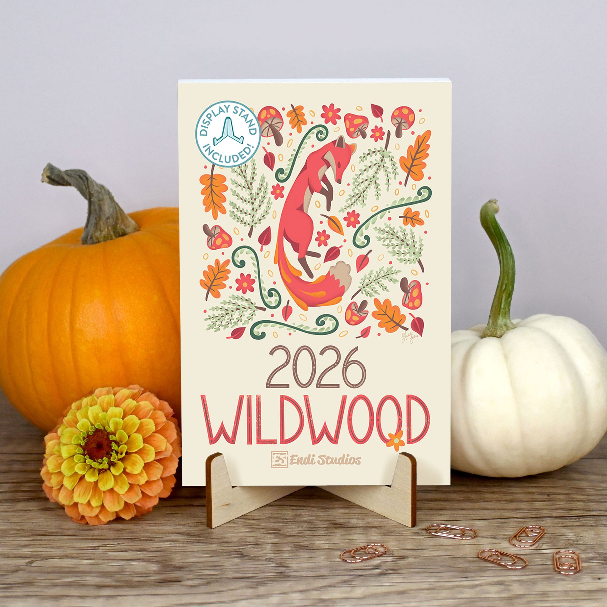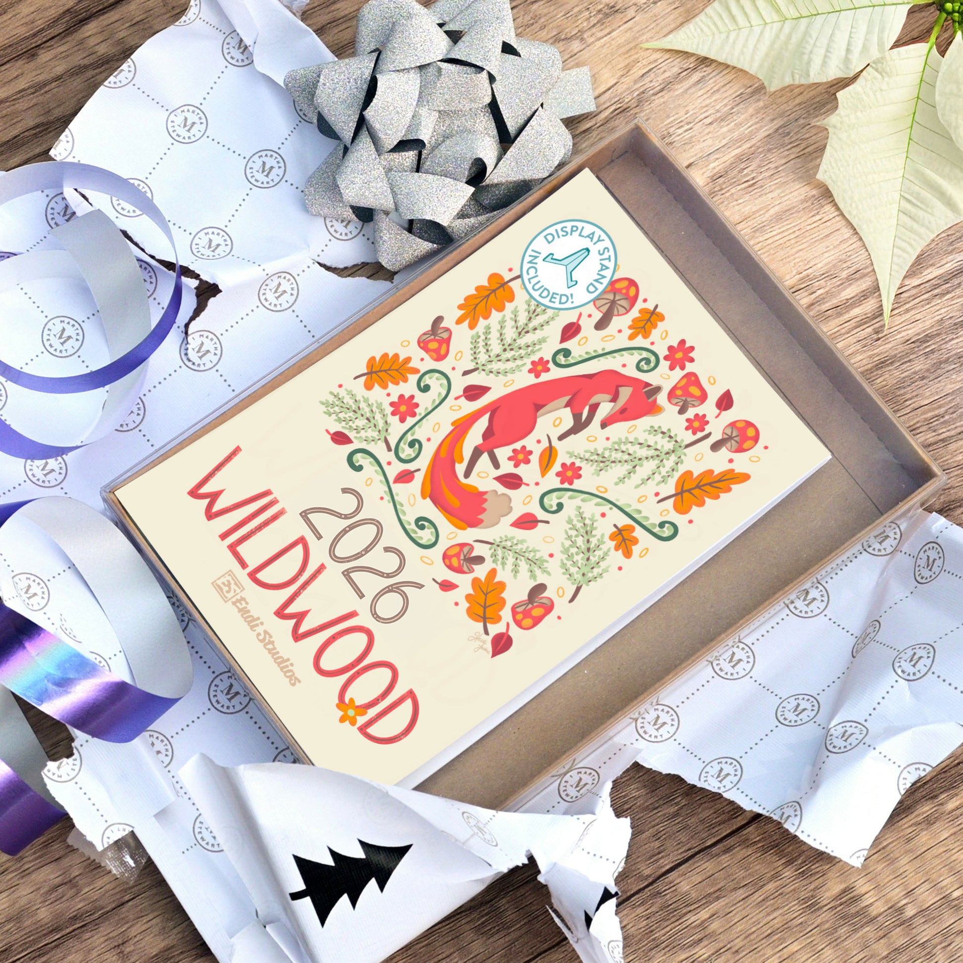 Elevate your desk or workspace with this unique 2026 Wildwood 4x6 desktop postcard calendar and enjoy a year filled with artistic beauty and inspiration. Get ready to celebrate 2026 in the company of charming woodland animals and stunning botanical motifs. Featuring a collection of 12 beautifully crafted illustrations, each month reveals a delightful combination of woodland creatures, lush plants, and colourful flowers. It makes the perfect choice to start your new year in style.