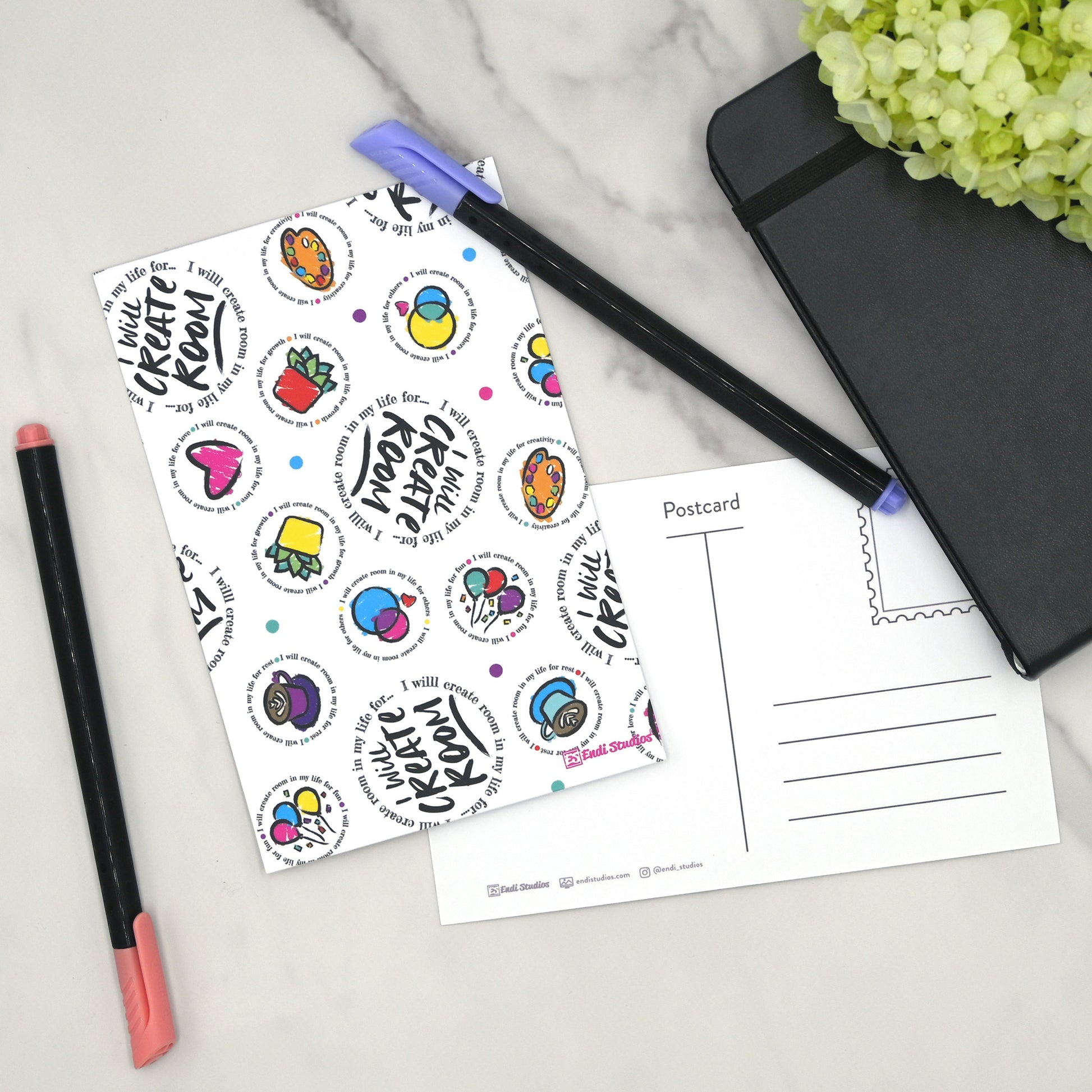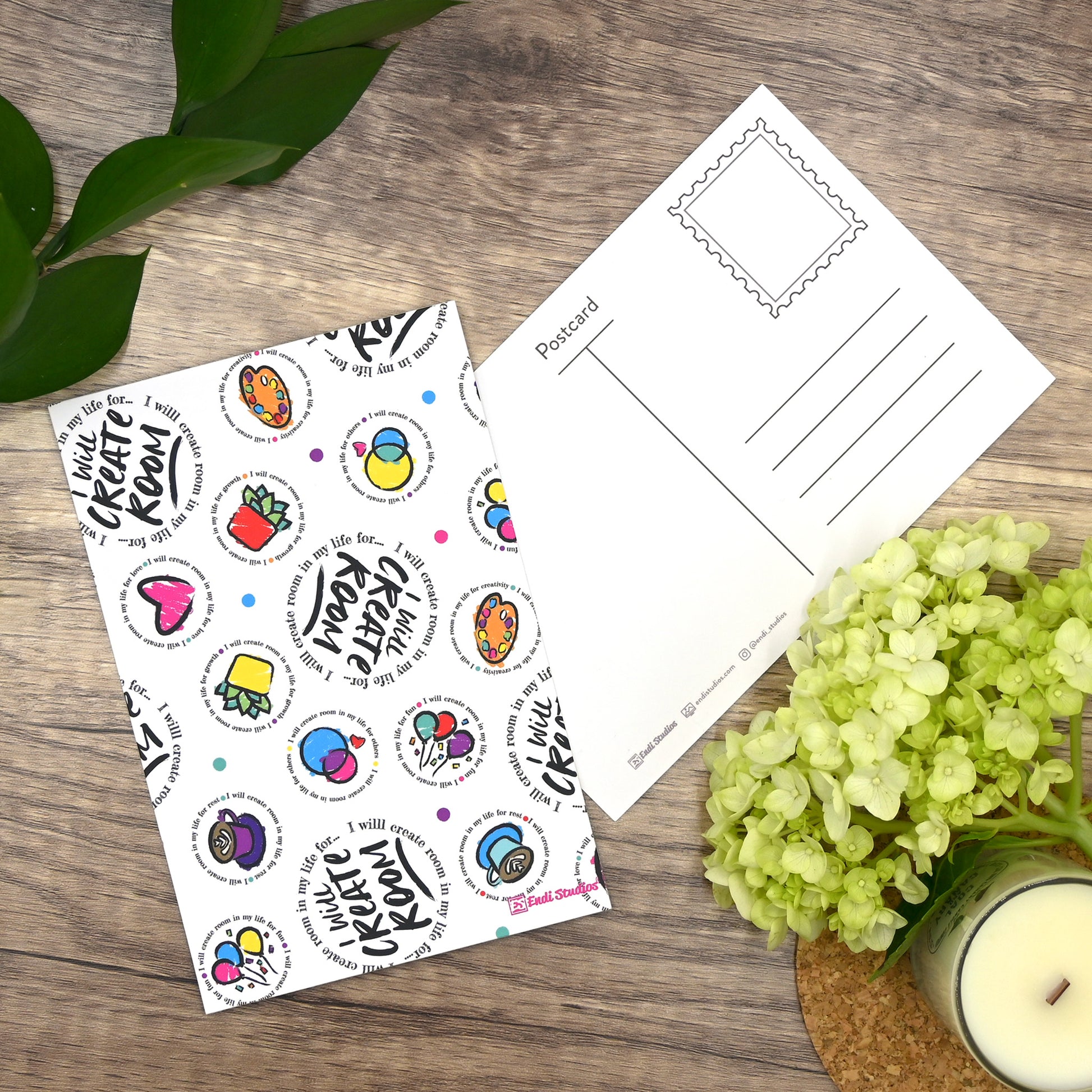 Immerse yourself in the artistic charm of Endi Studios with our Create Room postcard set featuring our distinct postcard design. The unique design guarantee that your messages carry a personal touch, standing out with individuality and thoughtfulness.