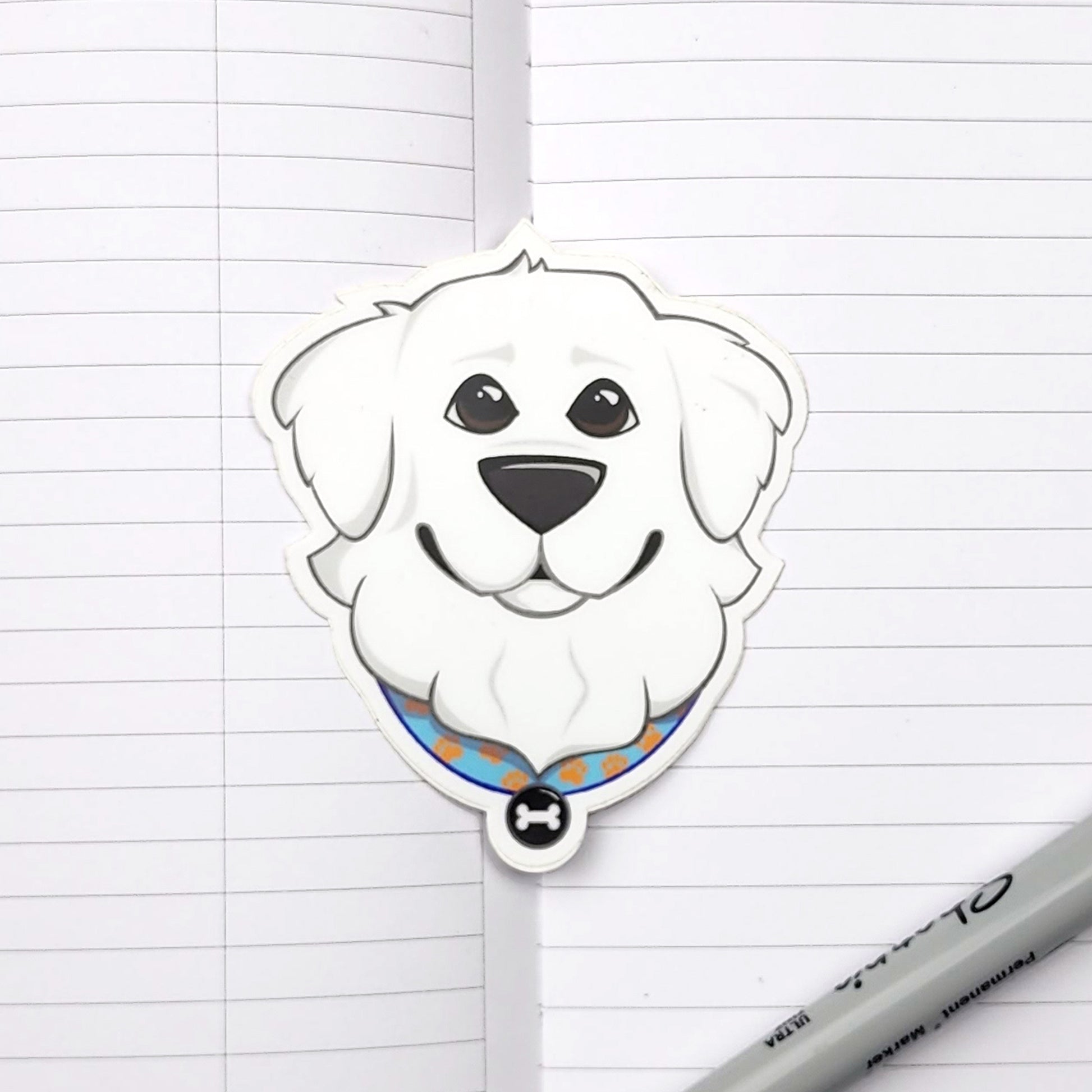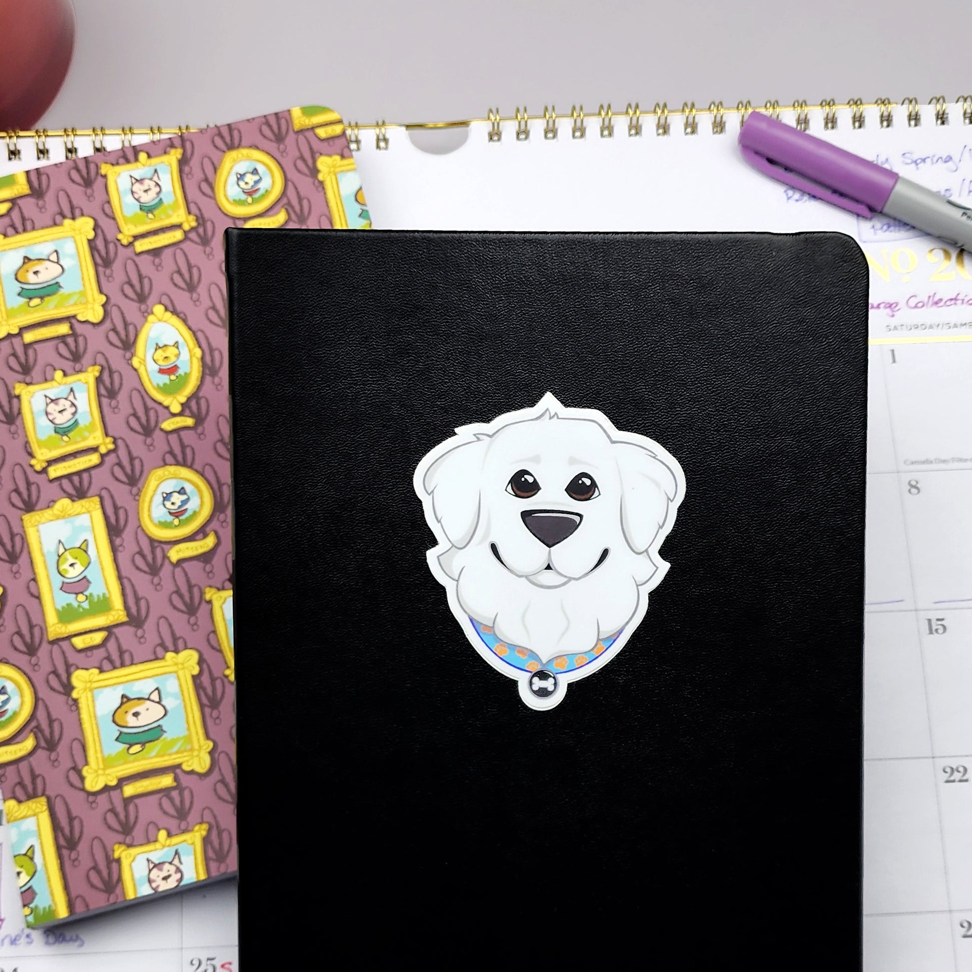 Bring home a lovable Great Pyrenees pup with this high-quality vinyl sticker. This sticker is based on my own dog who often has a goofy look on his face and fly away fur on the top of his head.