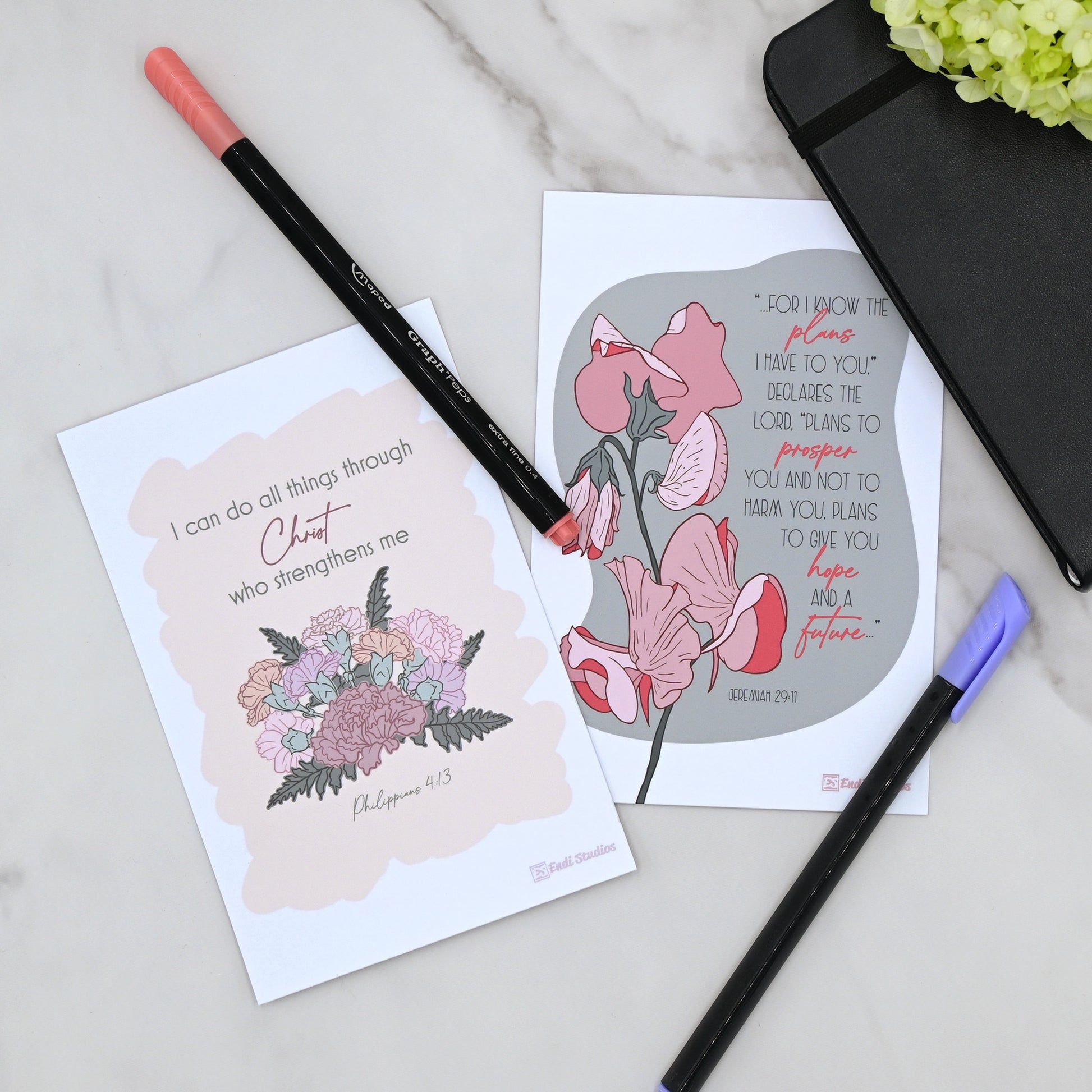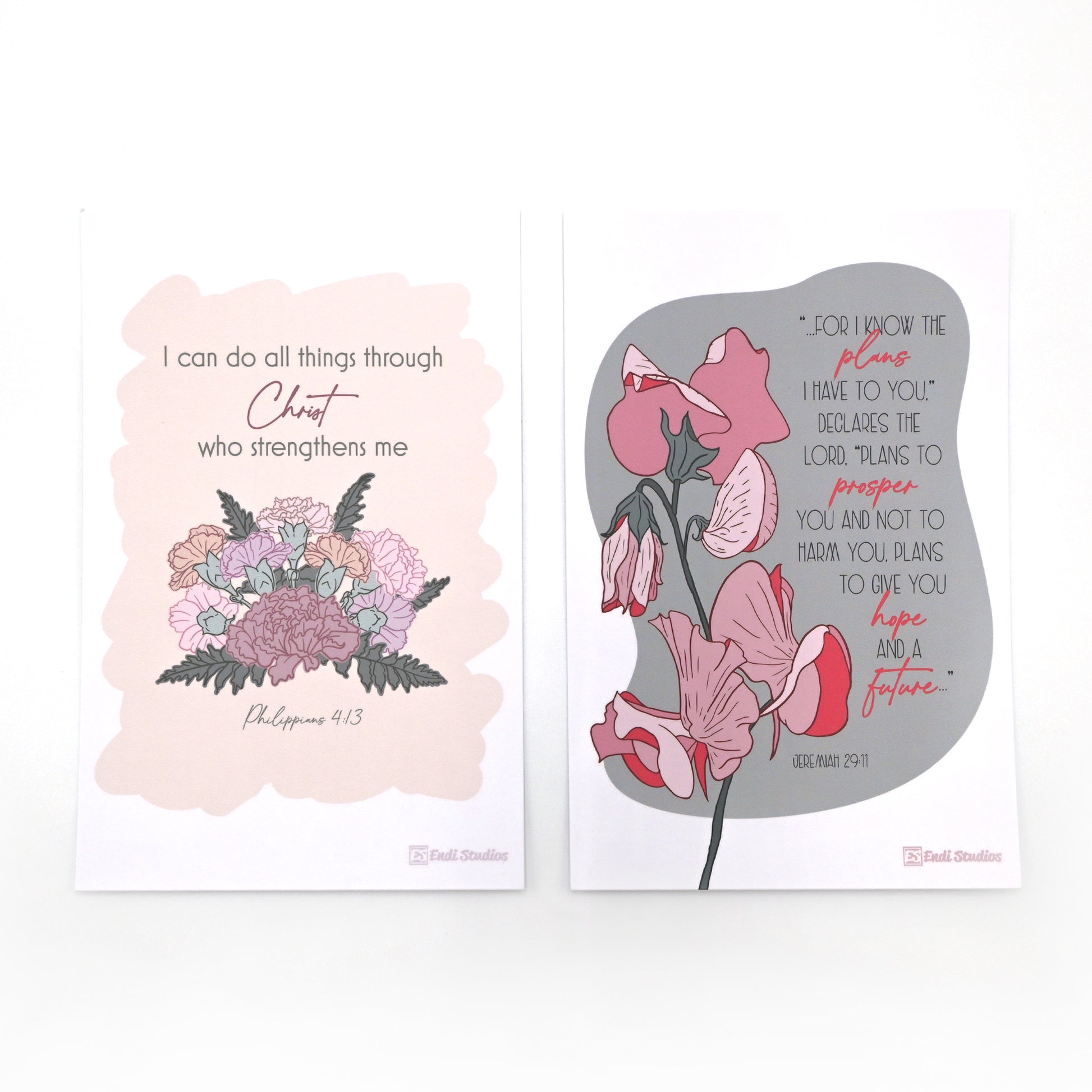 Immerse yourself in the artistic charm of Endi Studios with our Scripture postcard set featuring our distinct postcard designs. The unique design guarantee that your messages carry a personal touch, standing out with individuality and thoughtfulness.