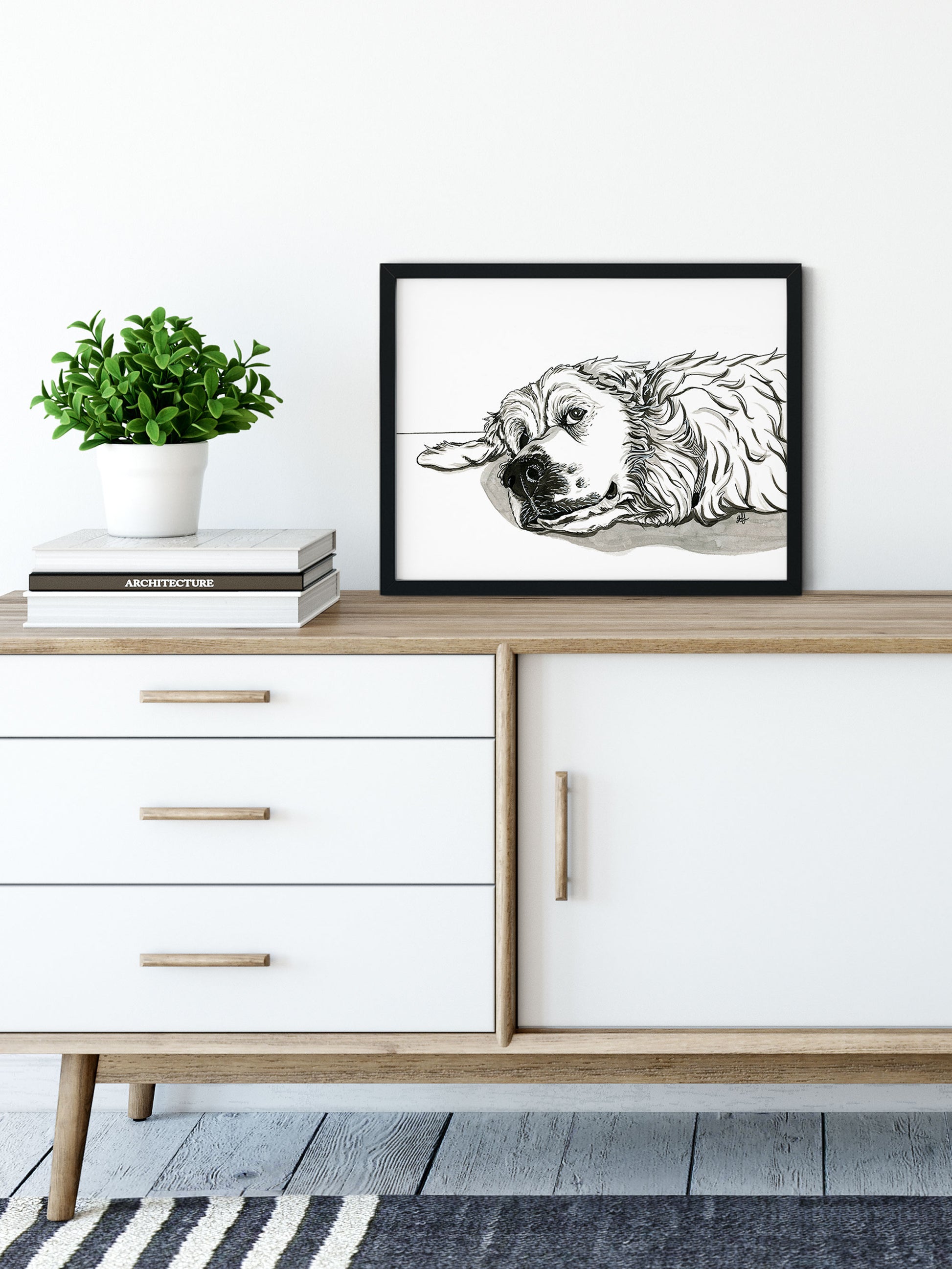 Have you ever seen this look before? It makes me laugh every time! With his laid-back demeanor and watchful eyes, he effortlessly adds character to any space. This delightful print is sure to bring a smile to your face and make a fun addition to any room in your home.
