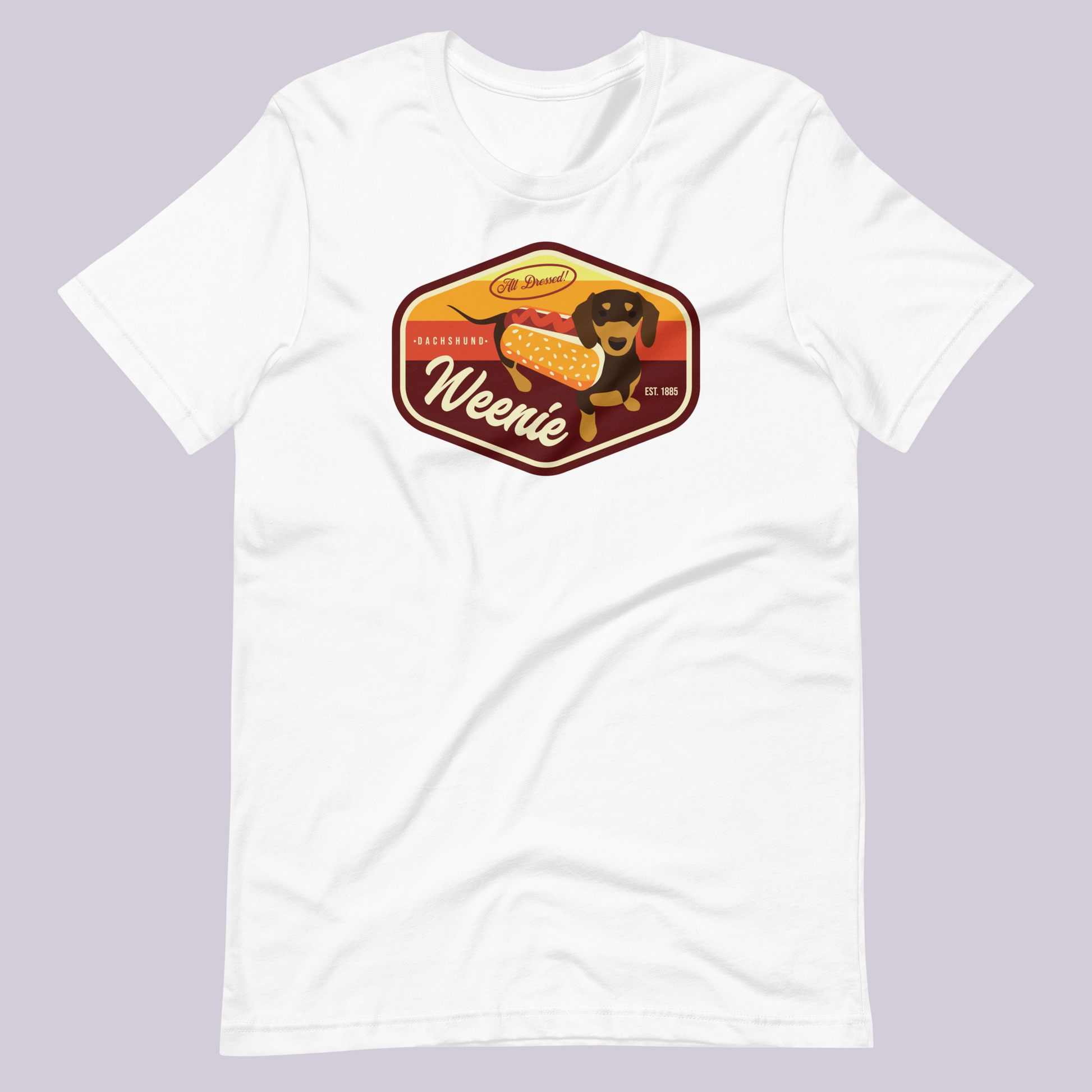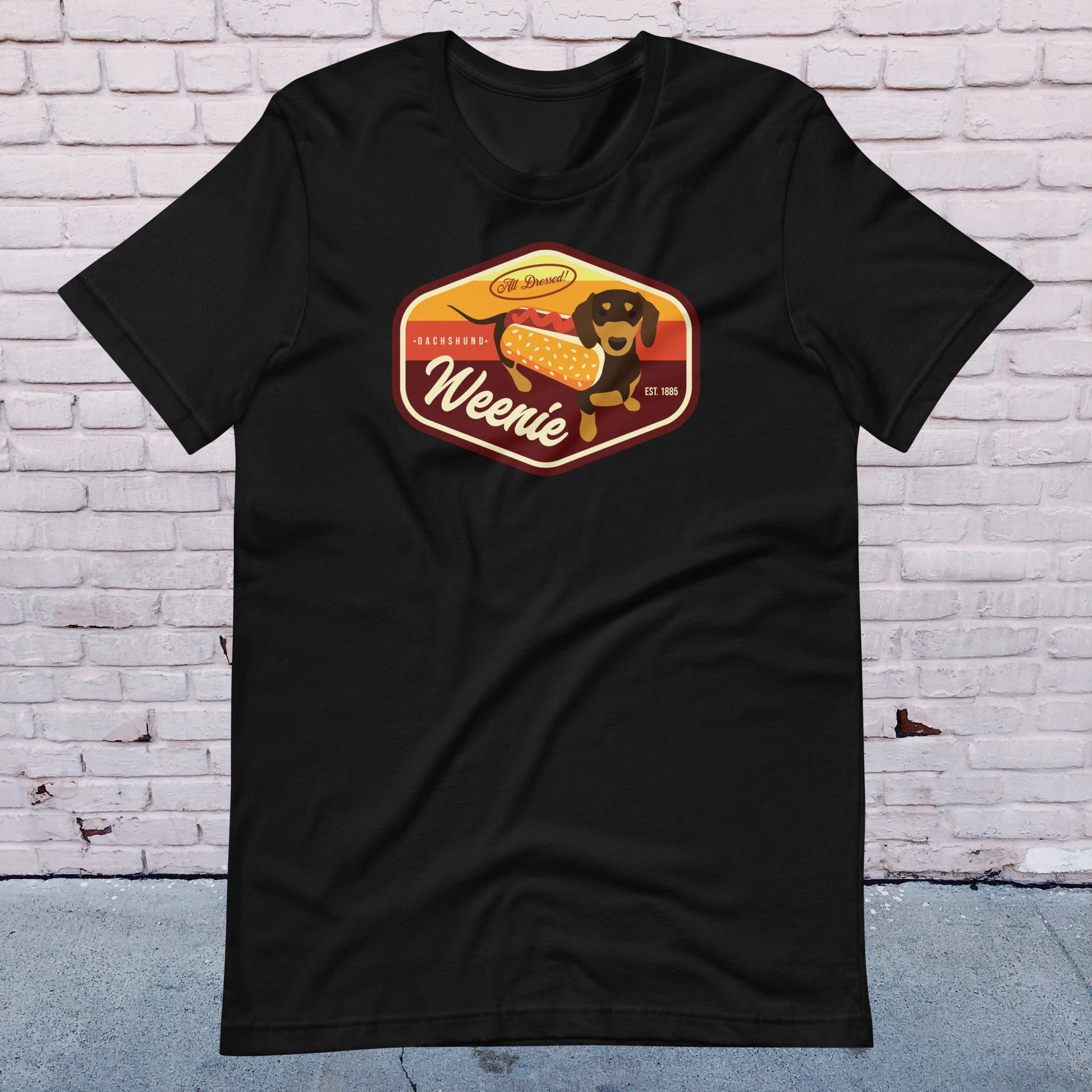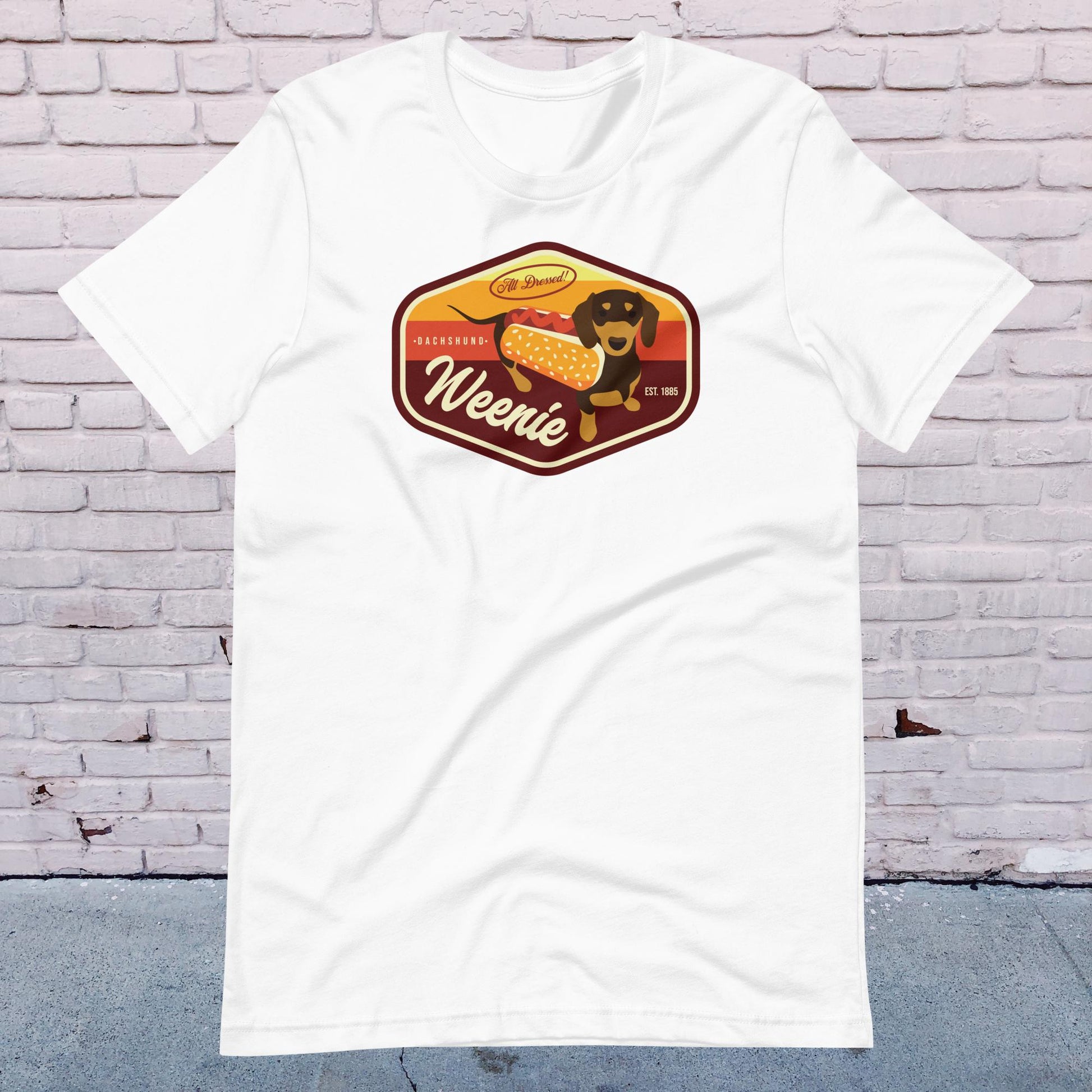 Step into the world of adorable costumed dachshund races with our Weenie T-Shirt! If you've ever been charmed by the sight of dachshunds dressed as hotdogs, you'll love this design that captures that heartwarming cuteness. Inspired by vintage 70's patches, this shirt is a perfect addition to your collection or a thoughtful gift for dog lovers and those who appreciate fun clothing.